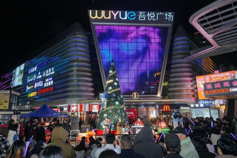 作为仙居商业地标,新城控股台州仙居吾悦广场此次七周年店庆紧扣“情感体验+消费升级”双重需求,精心策划了一系列沉浸式活动。亮灯仪式当晚,八米高的梦幻圣诞树在倒数声中璀璨点亮,与漫天翩然飘落的“雪花”交织成浪漫幻境,配合悠扬的乐队演出,让现场观众沉浸式感受冬日节日氛围,成为市民打卡分享的热门场景。活动期间,浪漫飘雪秀每日定时上演,雪花与灯光相映成趣,为消费者营造出堪比韩剧场景的拍照氛围;主题音乐会则涵盖流行金曲、经典旋律等多元曲风,从平安夜持续至跨年夜,用音浪点燃市民的狂欢热情,跨年夜更有七小时超长音乐趴,陪伴大家嗨至凌晨迎接新岁。