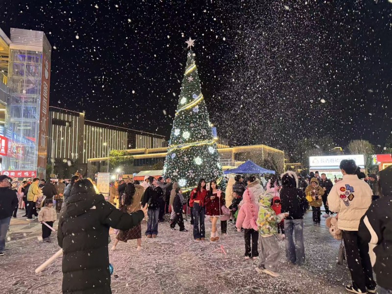 12月25日至12月27日,台州仙居吾悦广场举办浪漫飘雪秀活动,四台雪花机同步开启,将商场中庭打造成一片银装素裹的“雪世界”,吸引了众多市民前来打卡拍照,成为仙居冬日最具氛围感的活动之一。