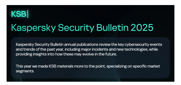 上述情景探讨了可能性较高但非传统意义上的风险演变路径,卡巴斯基对近期发展趋势的即时预测详情参见《2025年卡巴斯基安全公告》。
