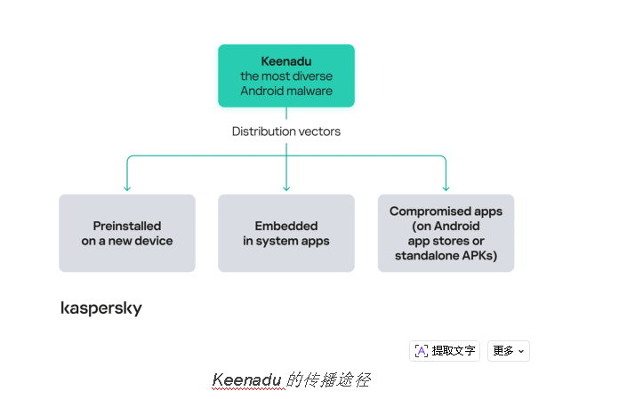 卡巴斯基发现了一种针对安卓设备的新型恶意软件,并将其命名为Keenadu。这种恶意软件以多种形式传播——它可以直接预装在设备的固件中,嵌入到系统应用程序中,甚至可以从 Google Play 等官方应用商店下载。目前Keenadu主要用于广告欺诈,攻击者将受感染设备作为“机器人”来执行广告链接点击,但它同样可被用于恶意目的,部分变种甚至能完全控制受害者的设备。