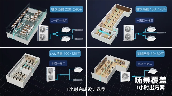 别人选方案要来回沟通好几天,耽误装修,海尔FAST多联机就搞标准化选型,看面积、算冷量、定内机、配外机,1小时出专属方案,千平以下商用场景全适配,不折腾。