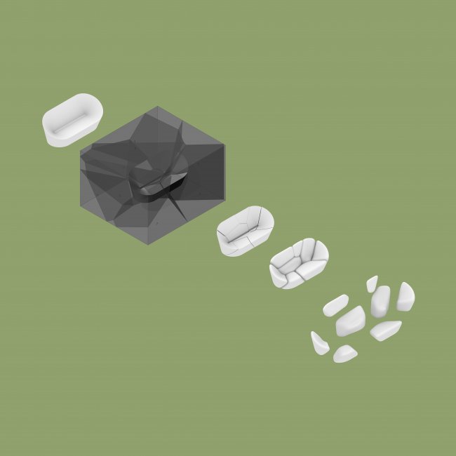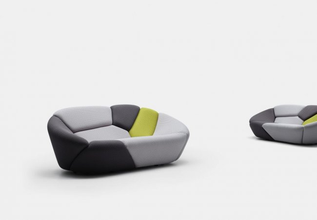 在“算法自然”系列中,杨明洁将几种不同的参数结构应用于软体家具,与传统工艺有所不同的是,沙发体块的生成并非只是表皮的平面切割,而是整体被算法立体切分为大小不一的有机体块,解构后重组。在保留良好人机工学体验的基础上,颠覆了传统沙发的构造与设计语言,一种由算法生成的全新美学与自然形态完美融合,故此系列命名为“算法自然”。
